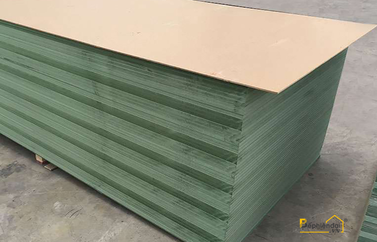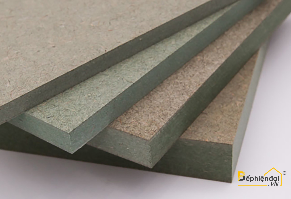 Ván chống ẩm: Lõi ván được phân biệt bởi màu xanh, phù hợp với nơi có độ ẩm cao như nhà bếp, phòng tắm