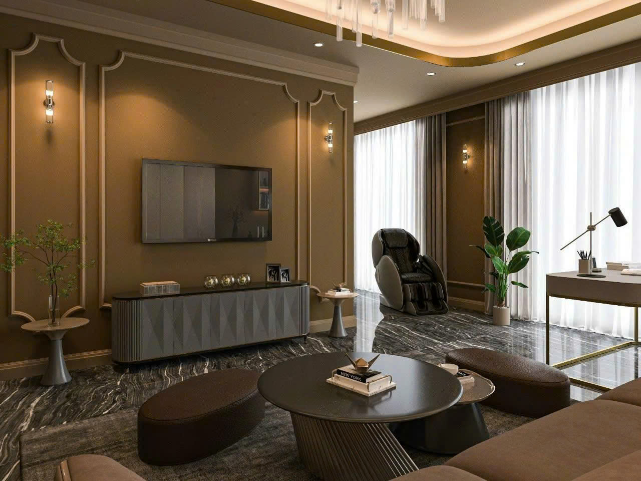 Căn hộ được thiết kế theo phong cách hiện đại, kết hợp yếu tố ấm cúng: